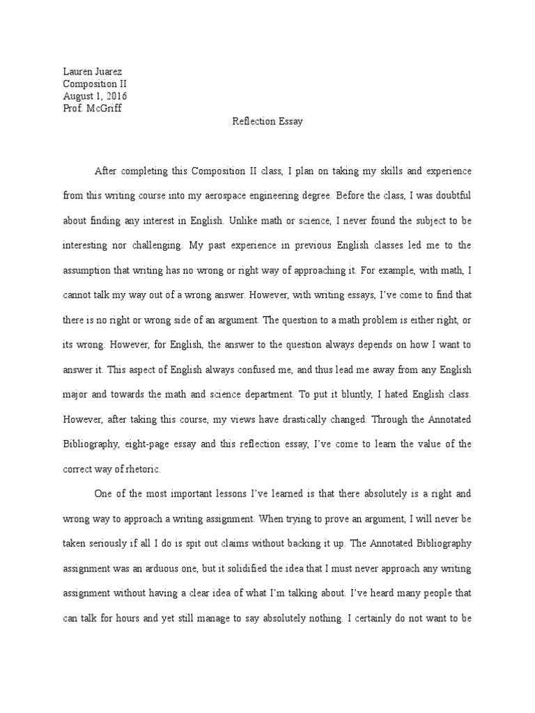 Example Of Reflection Paper With Introduction Body And Conclusion - Reaction Paper About Hotel Experience Essay Example : As opposed to presenting your reader the opinions of other academics and writers, in this essay you get an opportunity to write your point of view—and the best part is that there is no wrong answer.